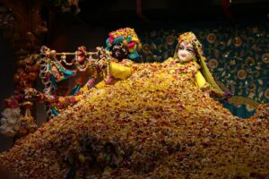 तत्पश्चात प्रात: 10 बजे से रात्रि 10 बजे तक अनवरत कीर्तन मेला आयोजित किया जिसमें देश विदेश से आए हुए विभिन्न भक्तों द्वारा हरे कृष्ण का अखण्ड सुमधुर कीर्तन किया गया। दोपहर 12:30 बजे श्री श्री राधा गोविन्द देव जी का 10 क्विंटल विशेष पुष्पों से पुष्प अभिषेक किया गया। सांय 7 बजे श्री भगवान की विशेष झूलन यात्रा एवं दीपोत्सव का आयोजन किया गया जिसमें भक्तो द्वारा 10000 दीपक प्रज्ज्वलित किए गए। पूरे दिन भर इस्कॉन की फूड फॉर लाइफ योजना के अन्तर्गत सभी को प्रसादम वितरित किया गया ।