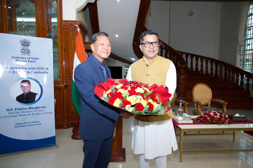 नोम पेन्ह। विदेश राज्य मंत्री पाबित्रा मार्गेरिटा ने 6 जुलाई को कंबोडिया और मलेशिया की आधिकारिक यात्रा शुरू की। नोम पेन्ह पहुंचने पर, मंत्री ने राष्ट्रपिता को श्रद्धांजलि अर्पित की और आईटीईसी और आईसीसीआर के पूर्व छात्रों के साथ बातचीत की, जिसमें कंबोडियाई गणमान्य व्यक्ति और कंबोडिया-भारत पूर्व छात्र संघ के अध्यक्ष शामिल हुए।