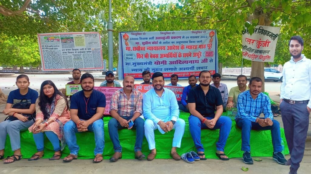 69000 शिक्षक भर्ती ना होने पर यूपी सरकार को राष्ट्रीय लोकदल की सीधी चेतावनी राष्ट्रीय लोक दल के लखनऊ महानगर के अध्यक्ष आशीष तिवारी आज 2019 शिक्षक भर्ती में सफल और चयनित अभ्यर्थियों से मिले और उन्होंने अपने राष्ट्रीय अध्यक्ष चौधरी जयंत सिंह का संदेश देते हुए राष्ट्रीय लोकदल का समर्थन देने का ऐलान किया। इको गार्डन, धरना स्थल पर पिछले काफी समय से धरना दे रहे अभ्यर्थियों से मिले आशीष तिवारी ने यूपी सरकार पर उच्चतम न्यायालय की अवमानना का आरोप लगाते हुए कहा कि सरकार नौजवानों के भविष्य के साथ बहुत बड़ा घात कर रही है और उनको सामाजिक आर्थिक पारिवारिक अवसाद की तरफ झोंक रही है। उन्होंने कहा कि ये नौजवान सरकार से भीख नहीं मांग रहे हैं, बल्कि अपना अधिकार मांग रहे हैं जिसे सरकार अपने अड़ियल रवैए और नौकरशाही के गलत फीडबैक से देने से कतरा रही है।धरने पर मौजूद प्रतीक्षारत अभ्यर्थियों ने भी अपनी पीड़ा पर साझा की।