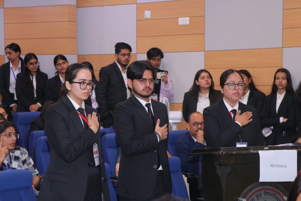 नोएडा : गौतम बुद्ध विश्वविद्यालय के स्कूल ऑफ लॉ जस्टिस एंड गवर्नेंस द्वारा दो दिवसीय राष्ट्रीय मूट कोर्ट प्रतियोगिता के दूसरे दिवस का आयोजन 9 नवम्बर 2025 को हुआ। । फाइनल राउंड होने के पश्चात समापन सत्र सम्पन हुआ । समापन सत्र के प्रारम्भ में स्कूल के अधिष्ठाता डॉ. के. के. द्विवेदी द्वारा स्वागत वक्तव्य दिया गया जिसमें उन्होंने सभी आमंत्रित विद्वतजनों, सम्मानित गणमान्य व्यक्तियों, संकाय सदस्यों और प्रतिभागियों का गर्मजोशी से स्वागत किया और मूट कोर्ट प्रतियोगिता के आयोजन के उद्देश्यों और शैक्षणिक भावना पर प्रकाश डाला।