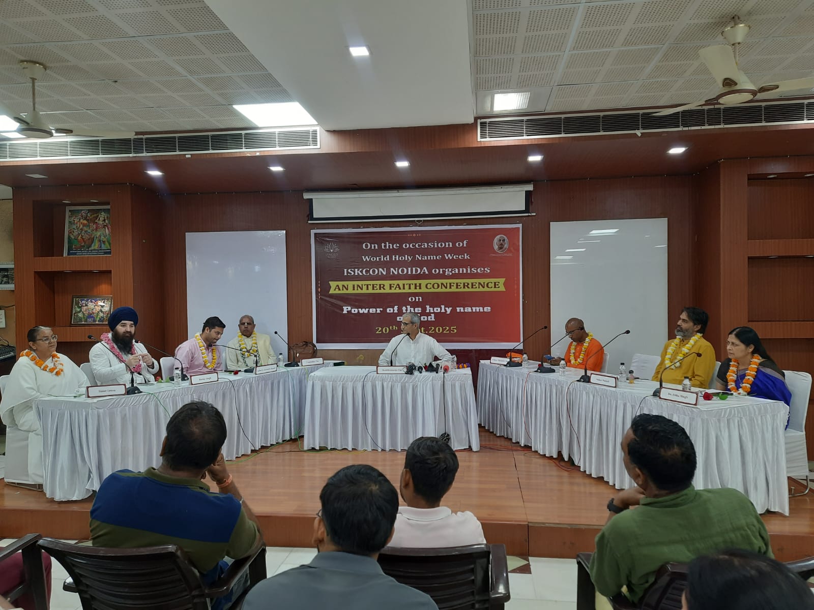 दिनाँक 20 सितम्बर 2025 को इस्कॉन नोएडा में सांय 5 बजे एक अन्तर्धर्मीय सम्मेलन (Inter-Faith Conference) का आयोजन किया गया, जिसमें अलग अलग धर्मों का पालन करने वाले धार्मिक नेताओं ने भाग लिया। ज्ञात हो इस्कॉन के संस्थापकाचार्य श्रील प्रभुपाद के अमेरिका आगमन के उपलक्ष्य में इस्कॉन पूरे विश्व भर में विश्व हरिनाम सप्ताह का आयोजन कर रहा है।